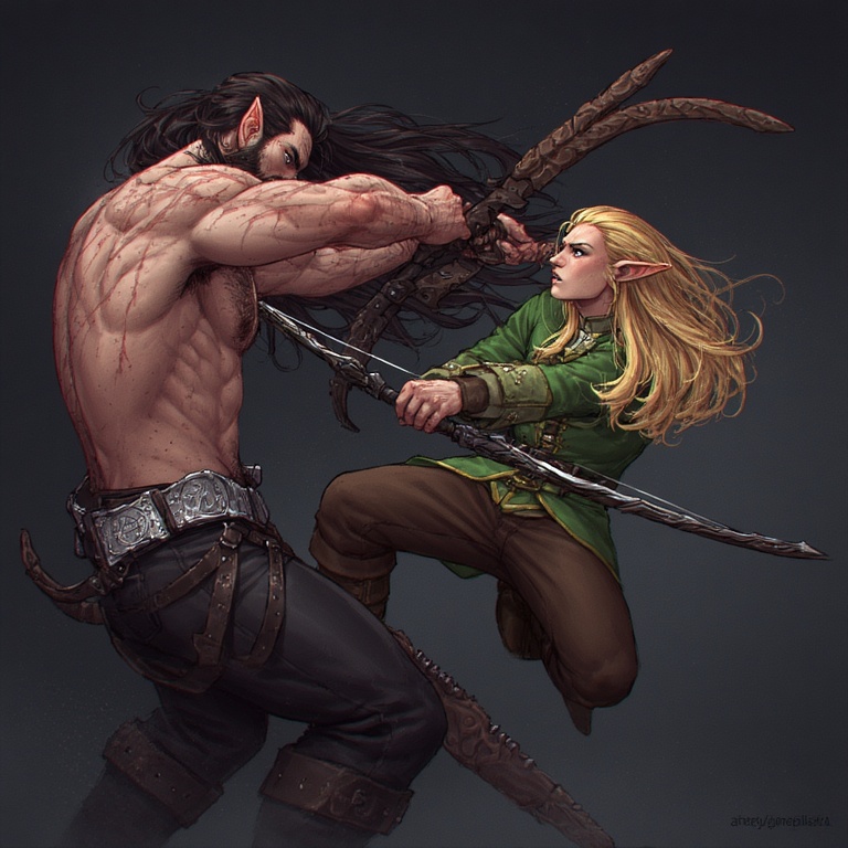 4. Image – An Alternative vision where Talion Barbossa and Legolas Greenleaf fight together